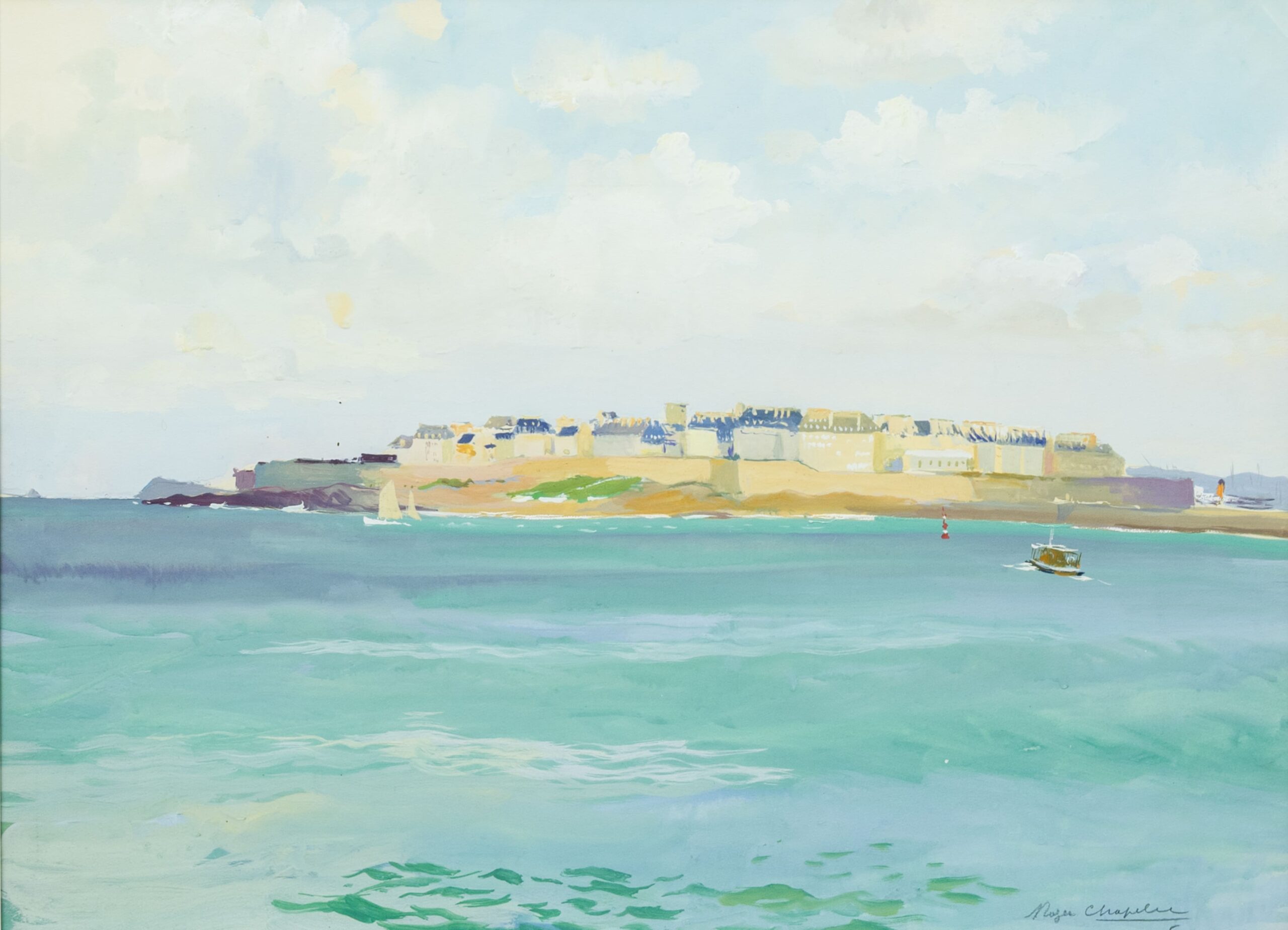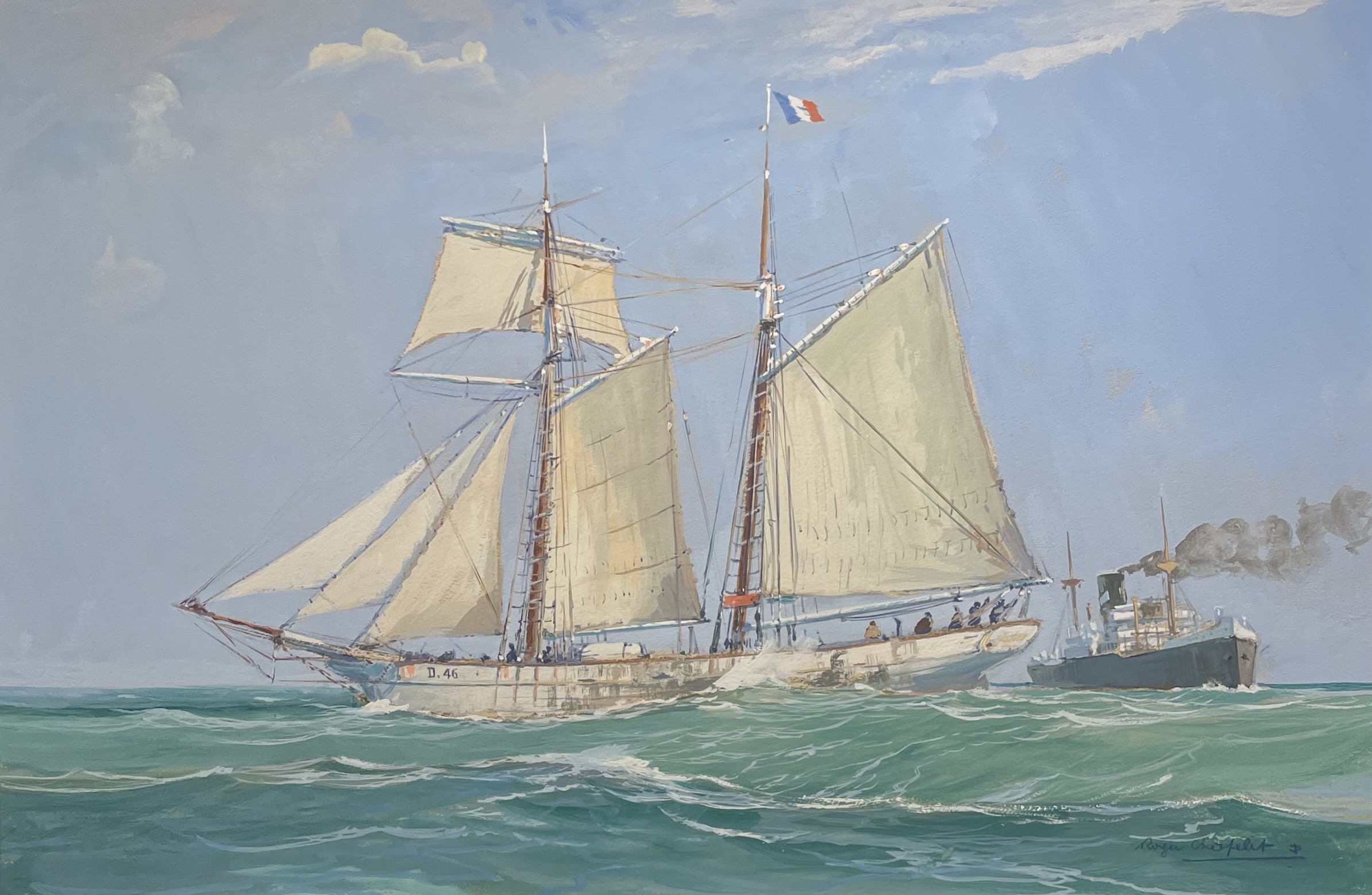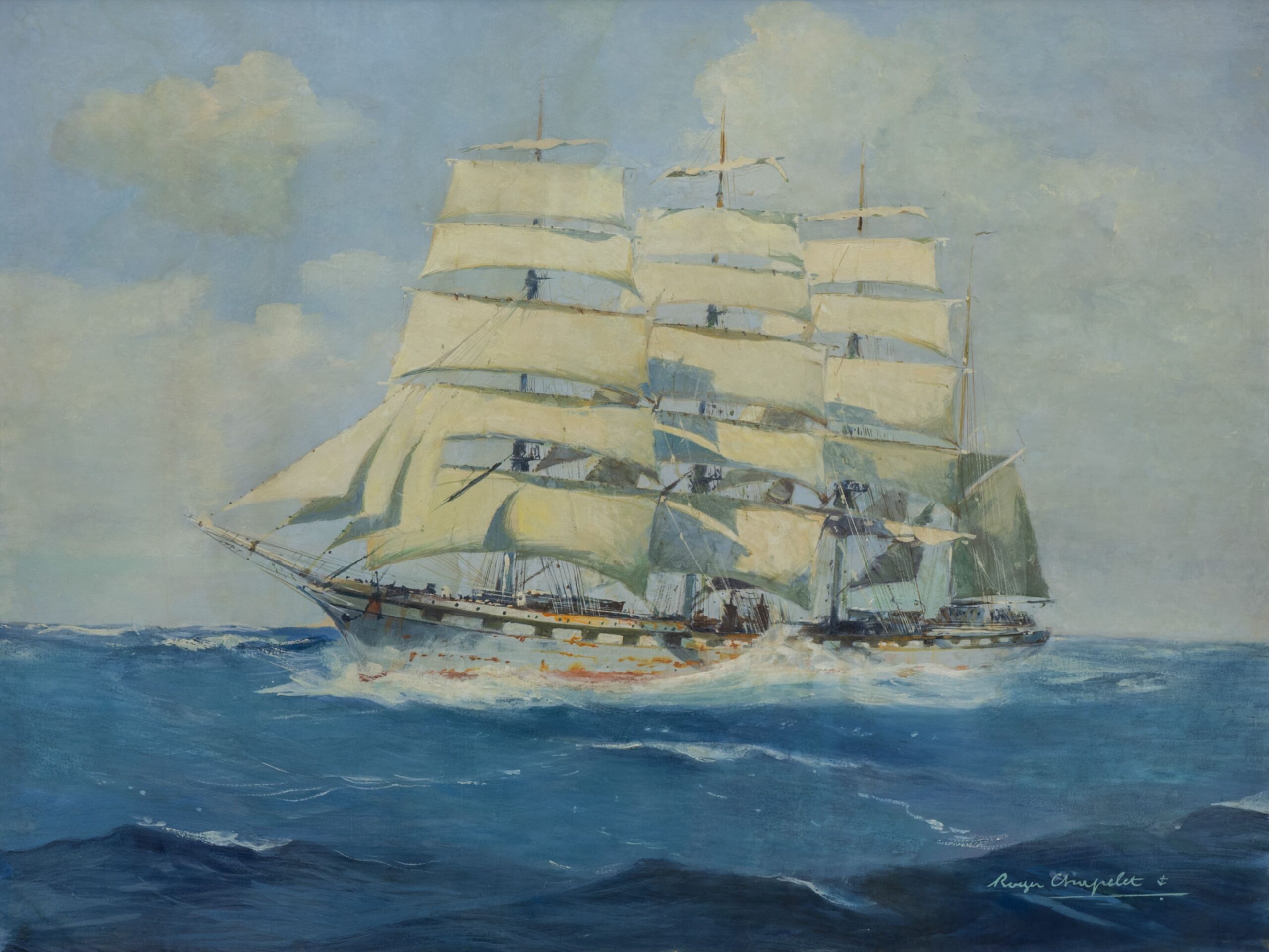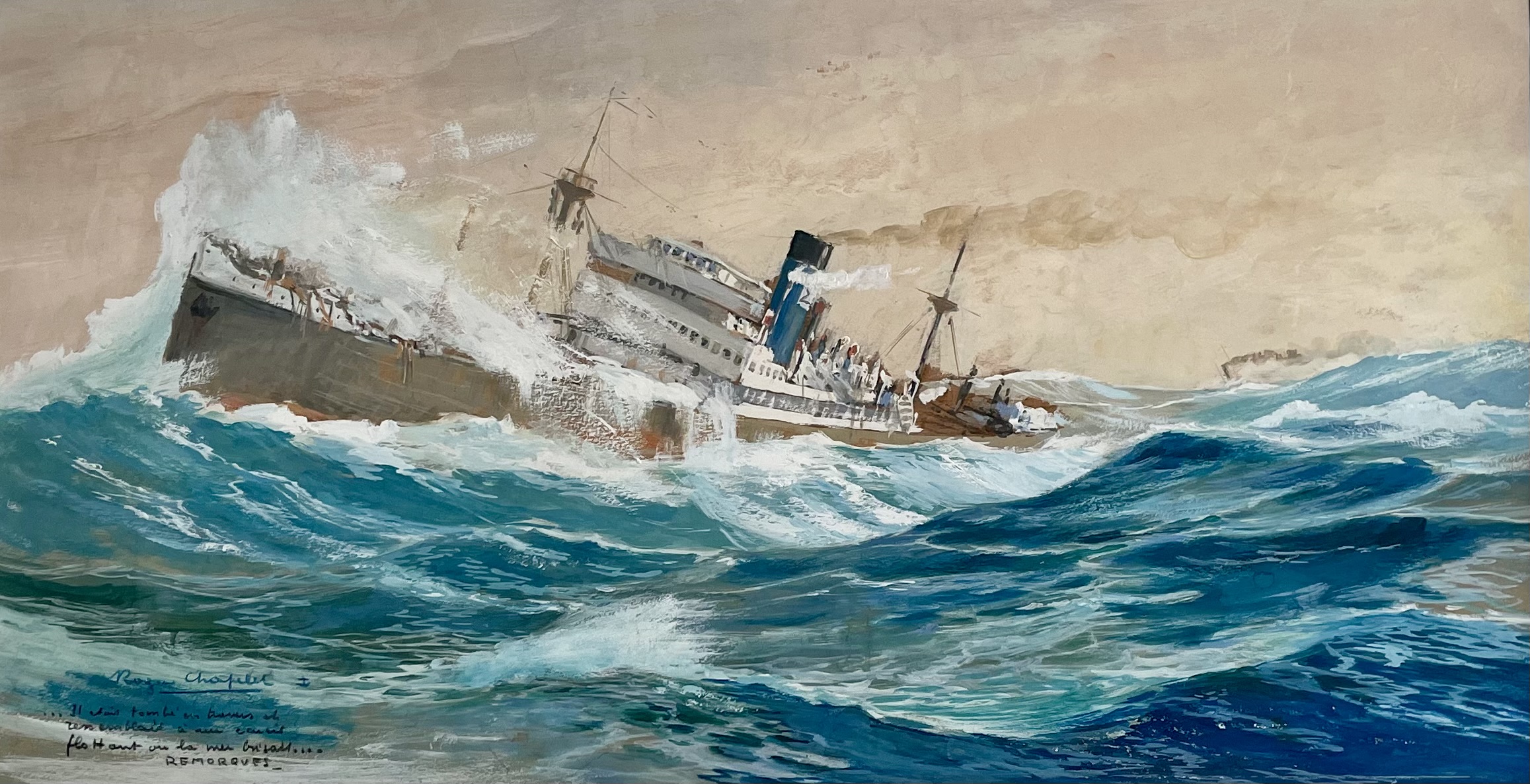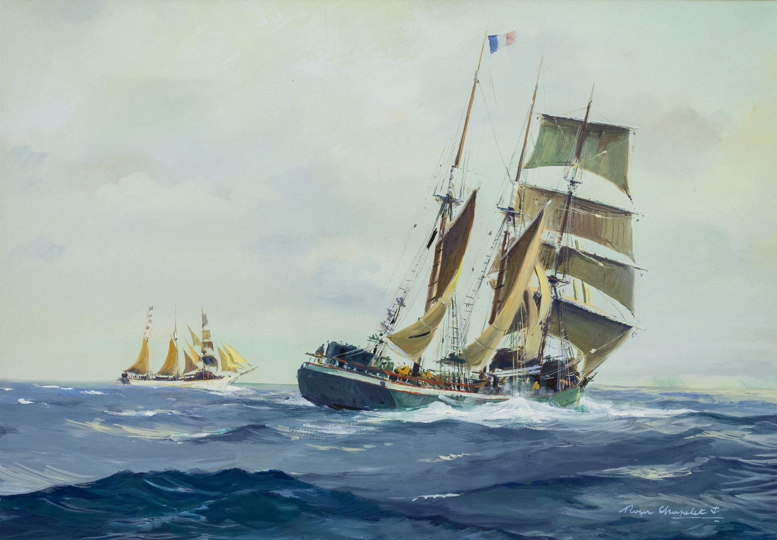 La Galerie Winston Dinard propose aujourd’hui une sélection d’œuvres originales de Roger Chapelet : huiles, gouaches, dessins. Elle s’attache à mettre en lumière les multiples facettes d’un artiste qui fut à la fois peintre embarqué, affichiste, et témoin sensible d’un monde maritime en mutation.