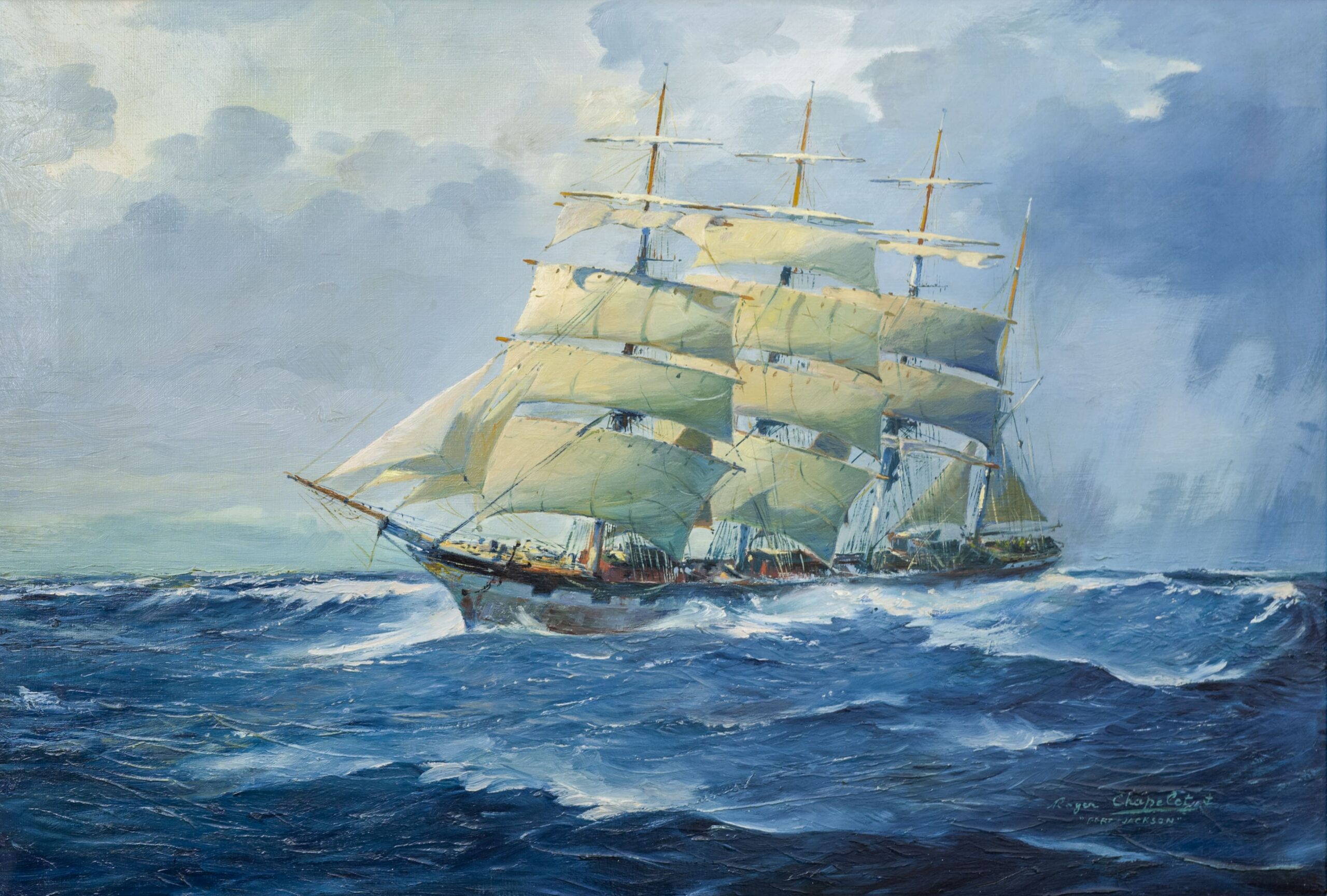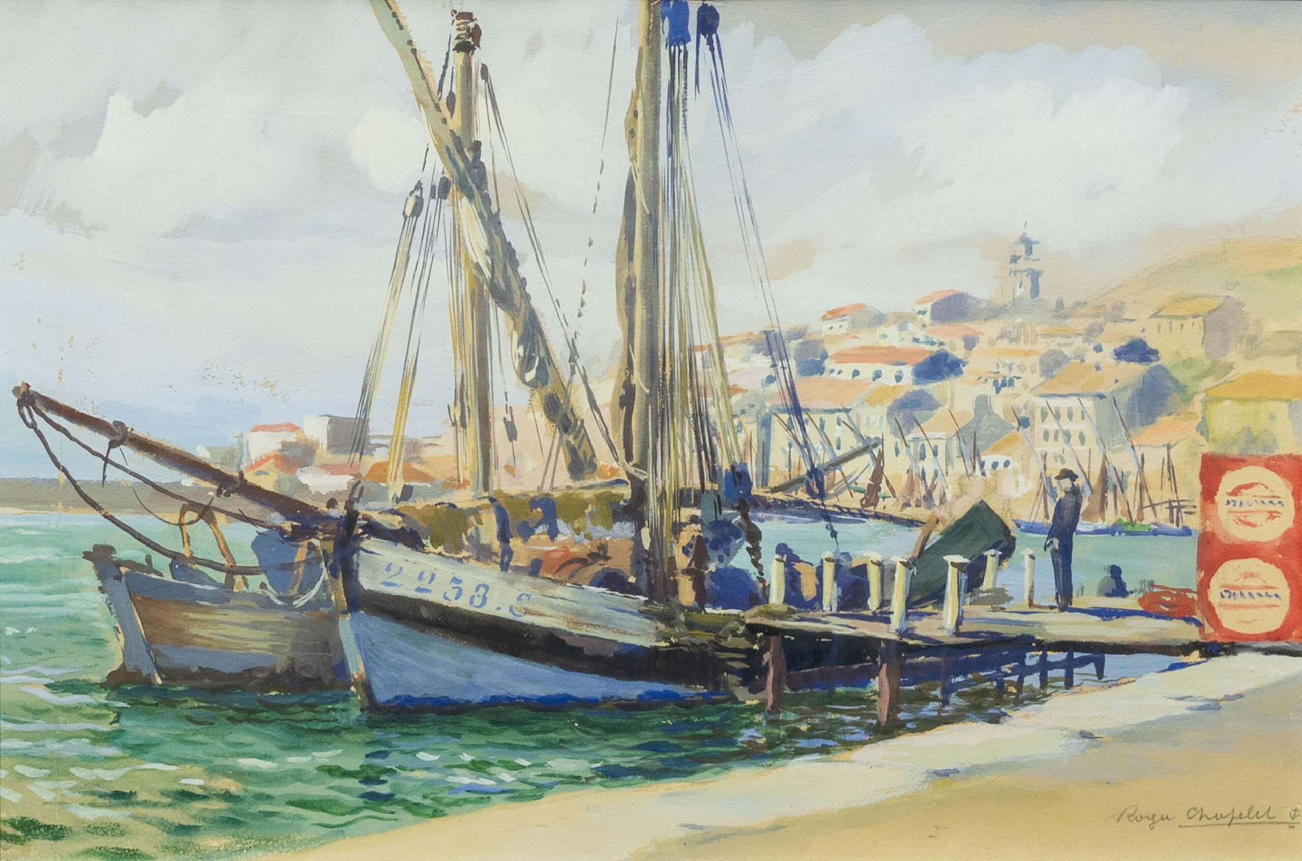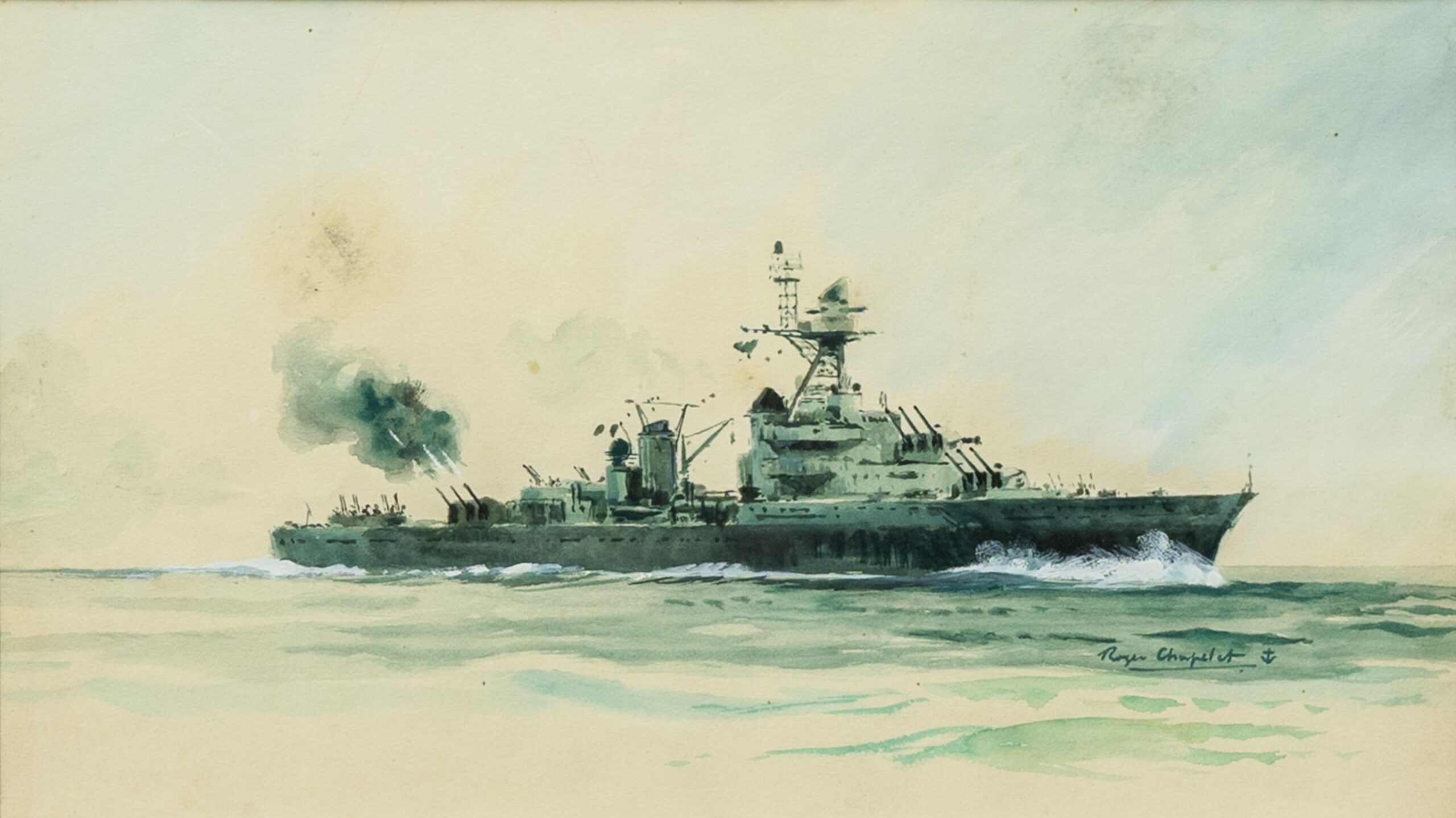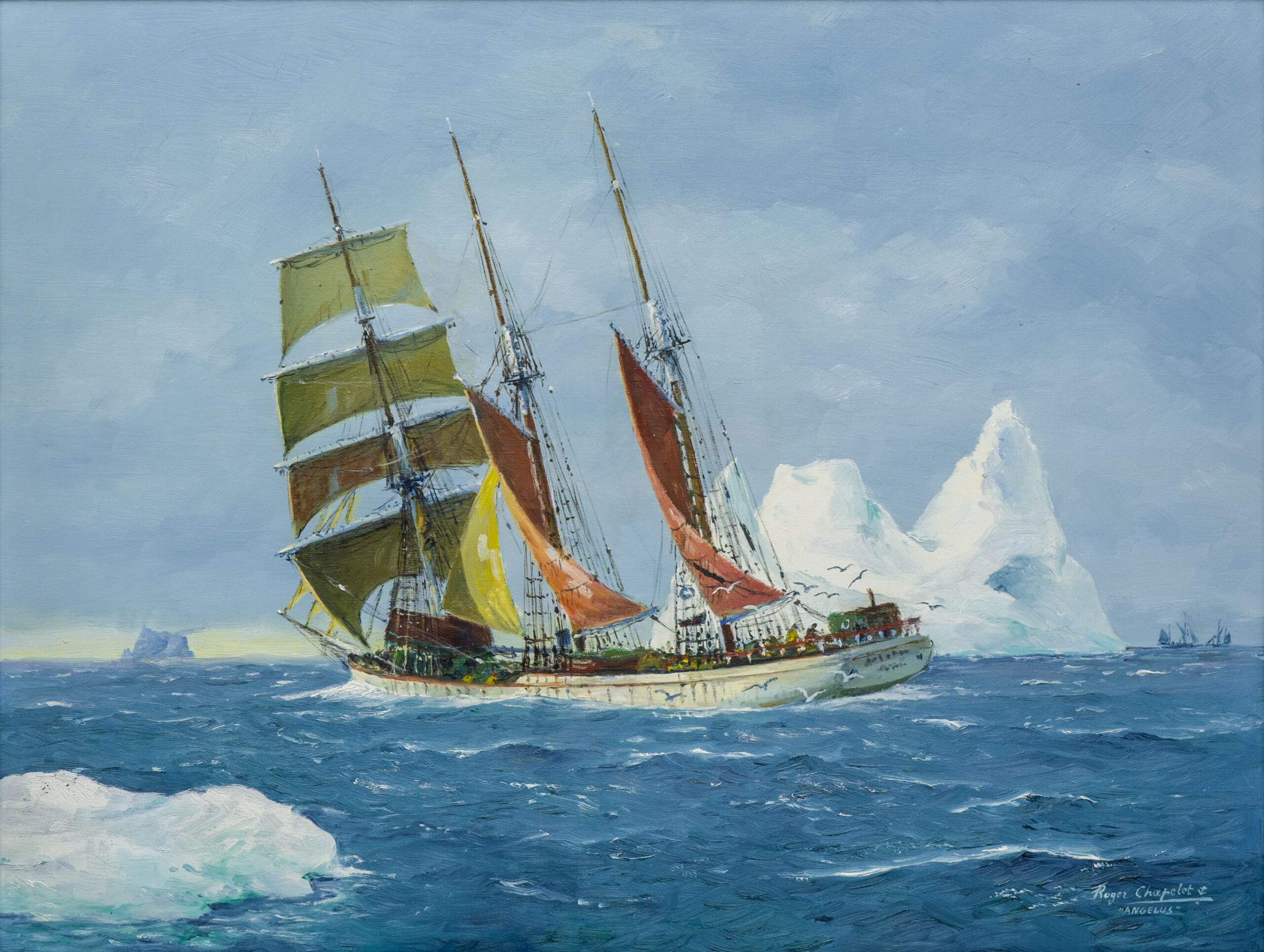 La Galerie Winston Dinard propose aujourd’hui une sélection d’œuvres originales de Roger Chapelet : huiles, gouaches, dessins. Elle s’attache à mettre en lumière les multiples facettes d’un artiste qui fut à la fois peintre embarqué, affichiste, et témoin sensible d’un monde maritime en mutation.