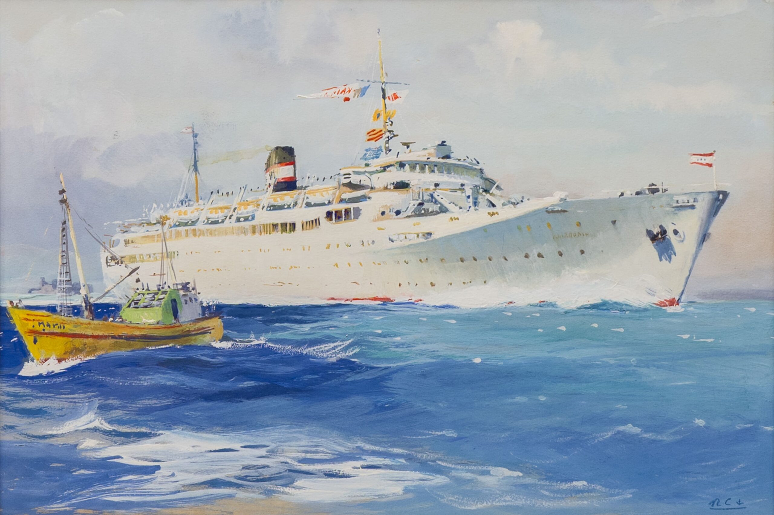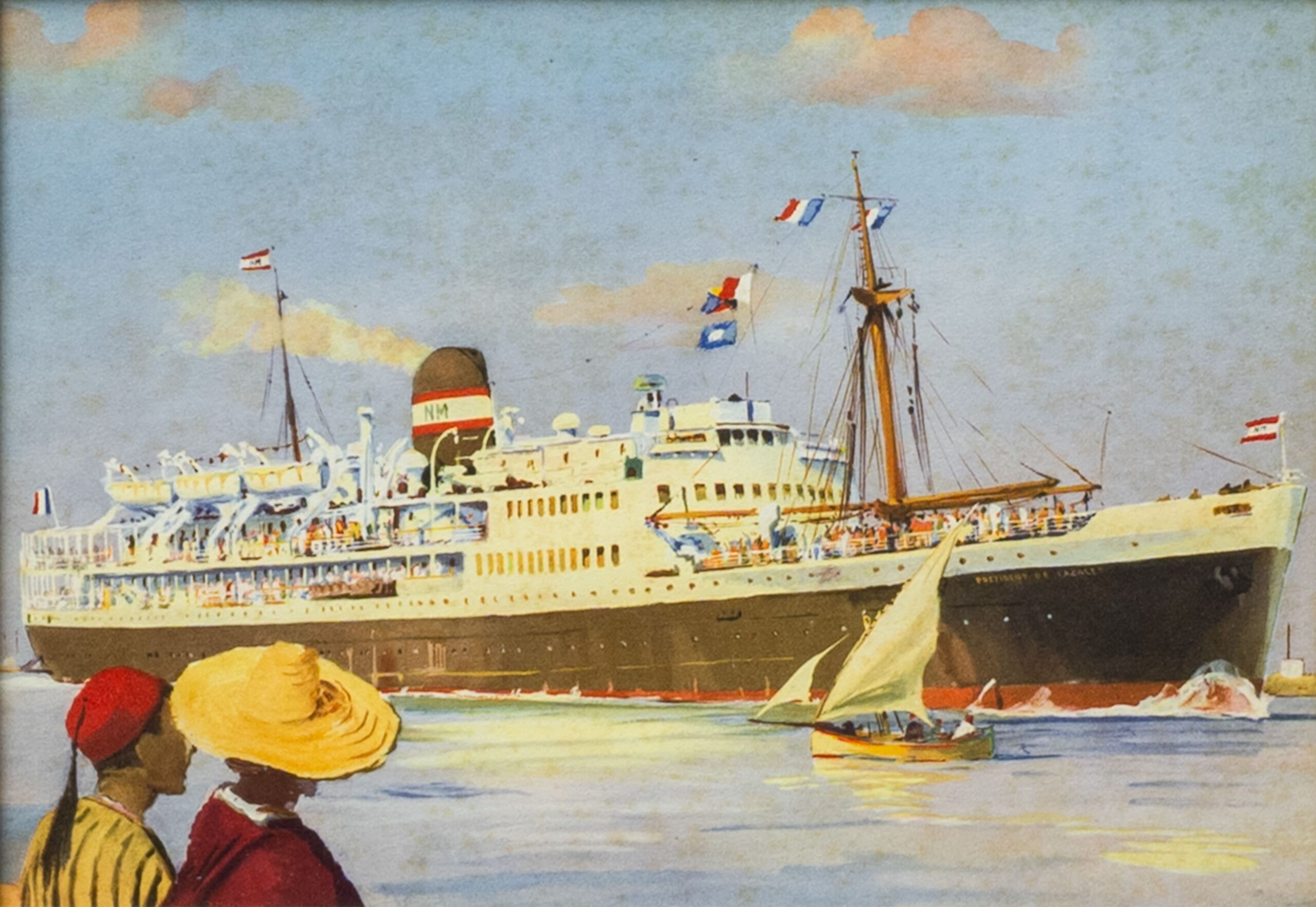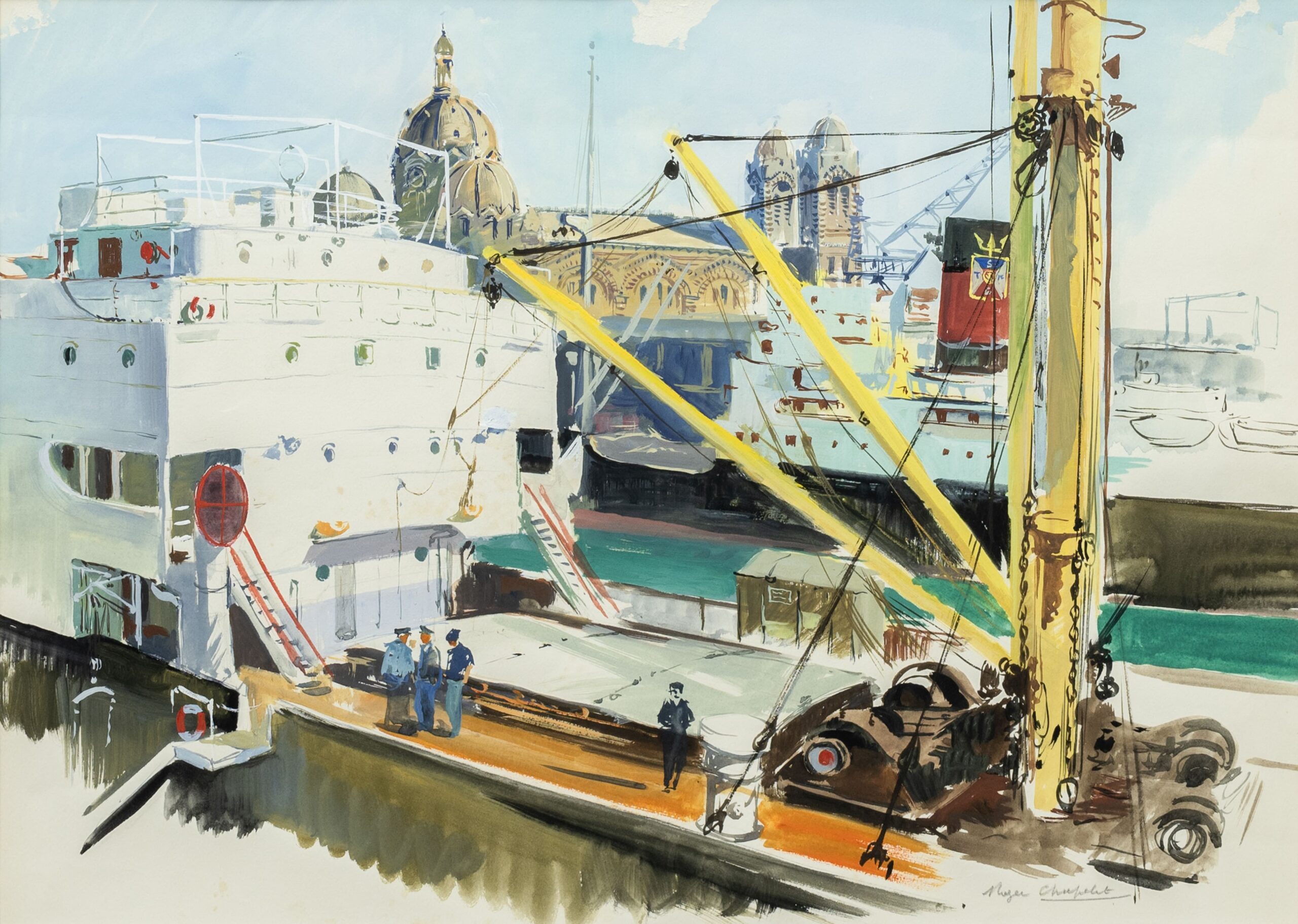 Après 1945, il poursuit sa collaboration avec les compagnies de navigation et produit des œuvres majeures pour les paquebots de l’après-guerre. Sa peinture se distingue par la précision technique des navires représentés, mais aussi par une réelle sensibilité à l’environnement maritime : ports, flottes de pêche, voiliers, cargos…