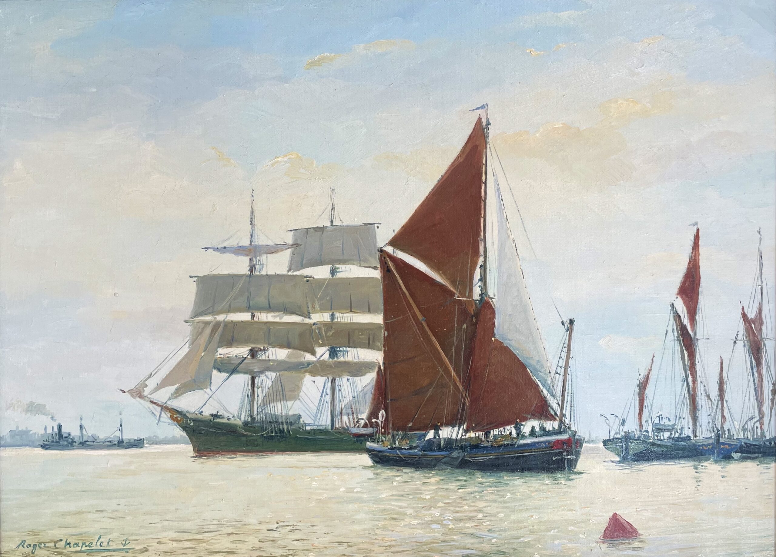 En 1936, Roger Chapelet est nommé Peintre officiel de la Marine et devient membre de l’Académie de Marine. Pendant la Seconde Guerre mondiale, il embarque sur des convois transatlantiques (1939–1940), puis est affecté en Méditerranée et en Indochine comme commissaire de marine (1942–1946). Il continue à peindre, croquant avec constance la vie à bord et les théâtres d’opérations navales.