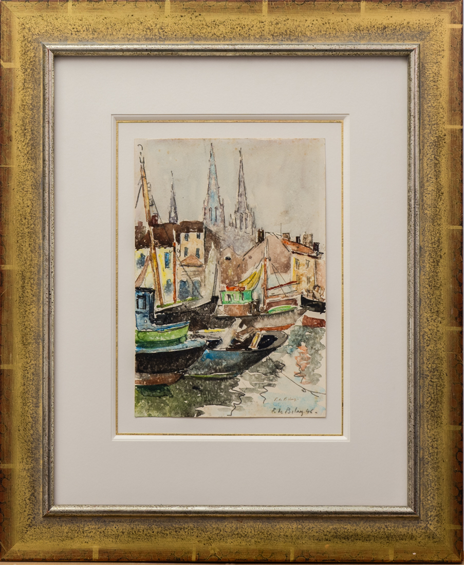 Pierre de Belay partage ensuite sa vie entre Paris et la Bretagne, puisant son inspiration dans les scènes de la vie quotidienne des ports bretons, des marchés animés, des cafés populaires ou encore dans l’atmosphère bohème de Montmartre. Ses compositions sont marquées par une grande vitalité du trait, un sens aigu du mouvement et une palette riche en contrastes.