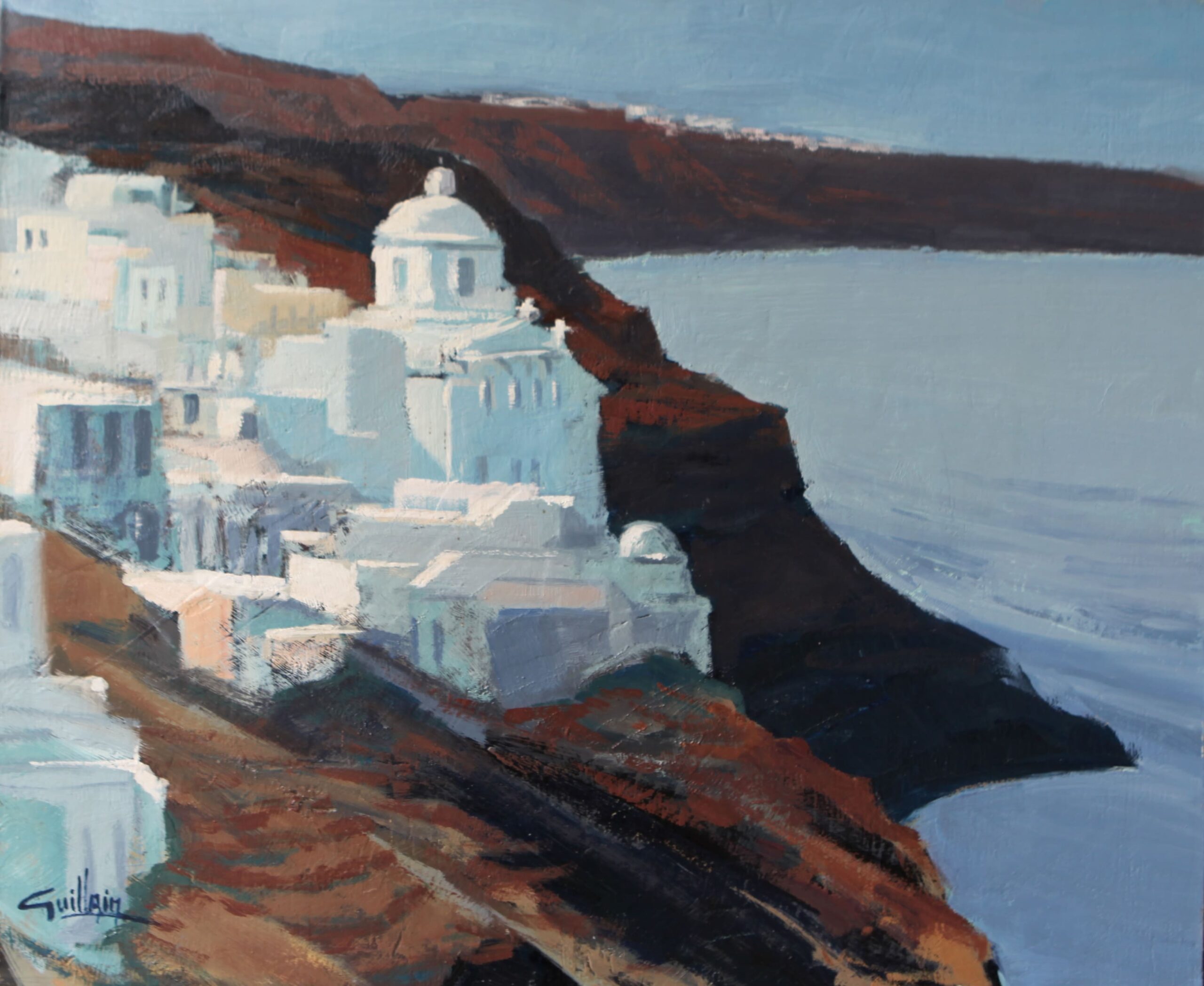Au fil de ses voyages, sa palette se réchauffe, sa touche en aplats généreux s’affine mais son trait, dépourvu de tout détail superflu, demeure. Les toiles exposées témoignent du génie avec lequel Guillain restitue la lumière : à la manière d’Albert Marquet, l’artiste joue habilement avec la couleur et les contrastes pour recréer les ambiances des scènes dont il s’est imprégné.
