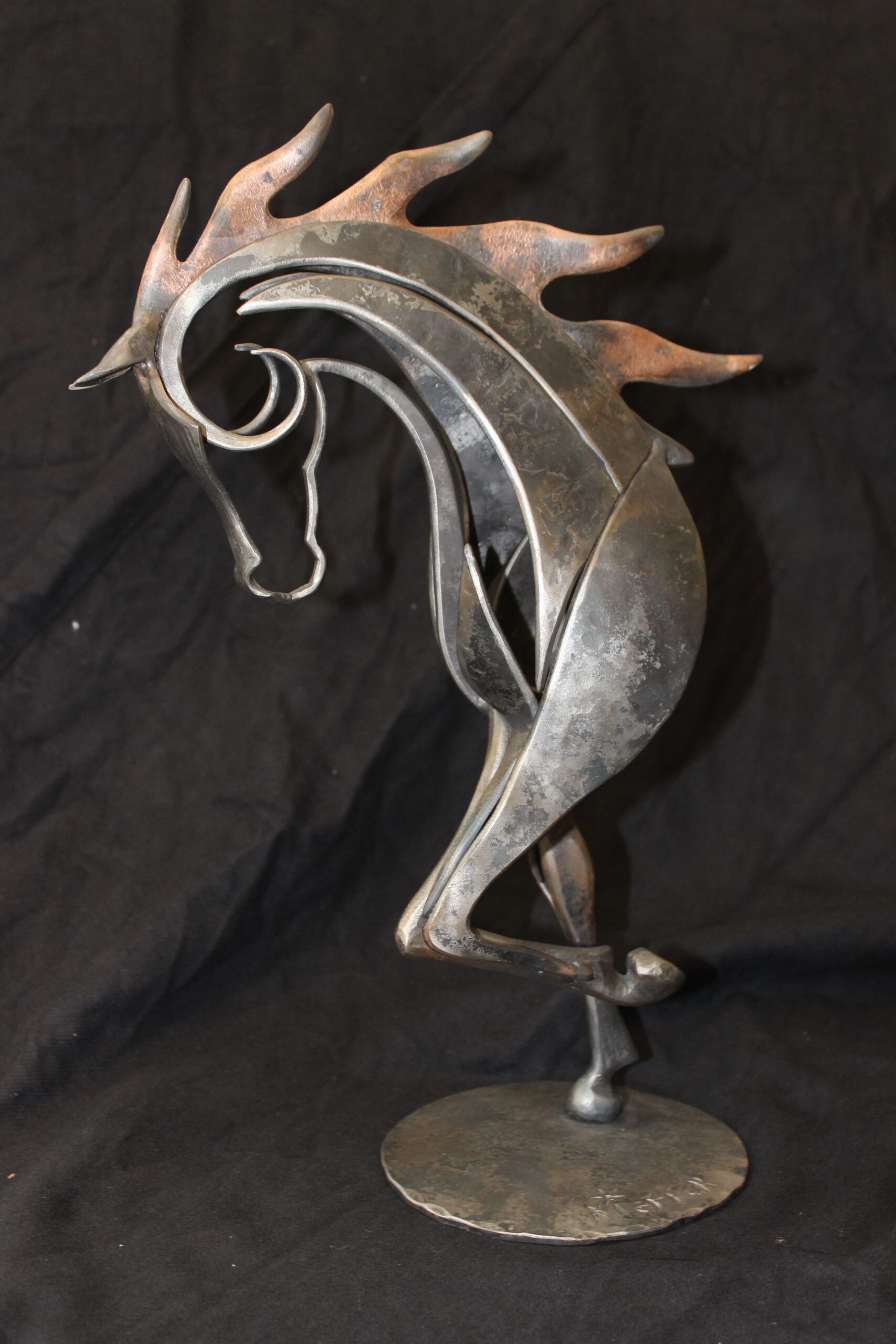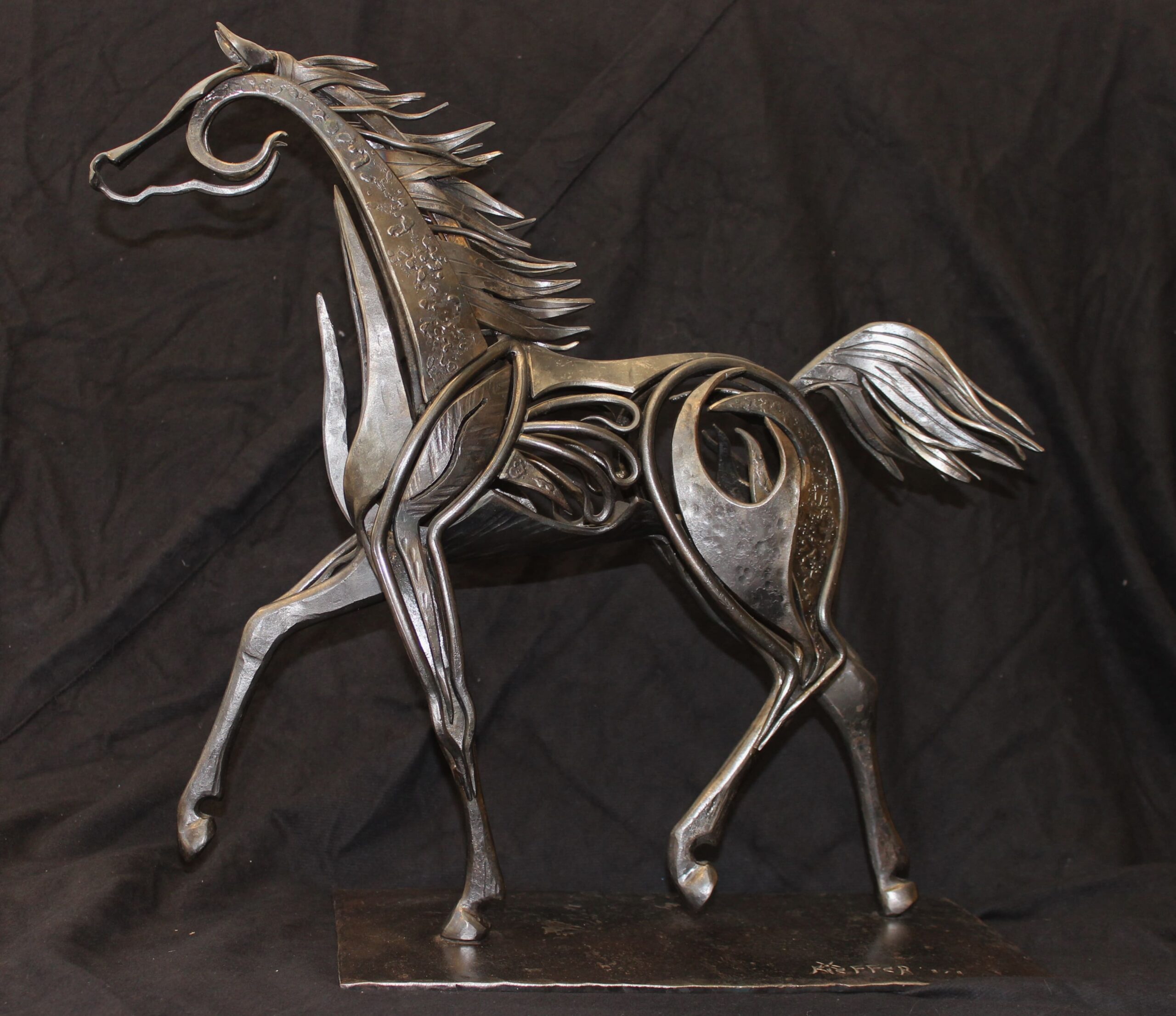 Puis, créateur dans l’âme, sa passion de la forge et son amour du cheval l’ont conduit vers la sculpture. Réalisées en fer forgé, ses sculptures sont des pièces uniques. Premier prix au salon d’automne de Saumur.