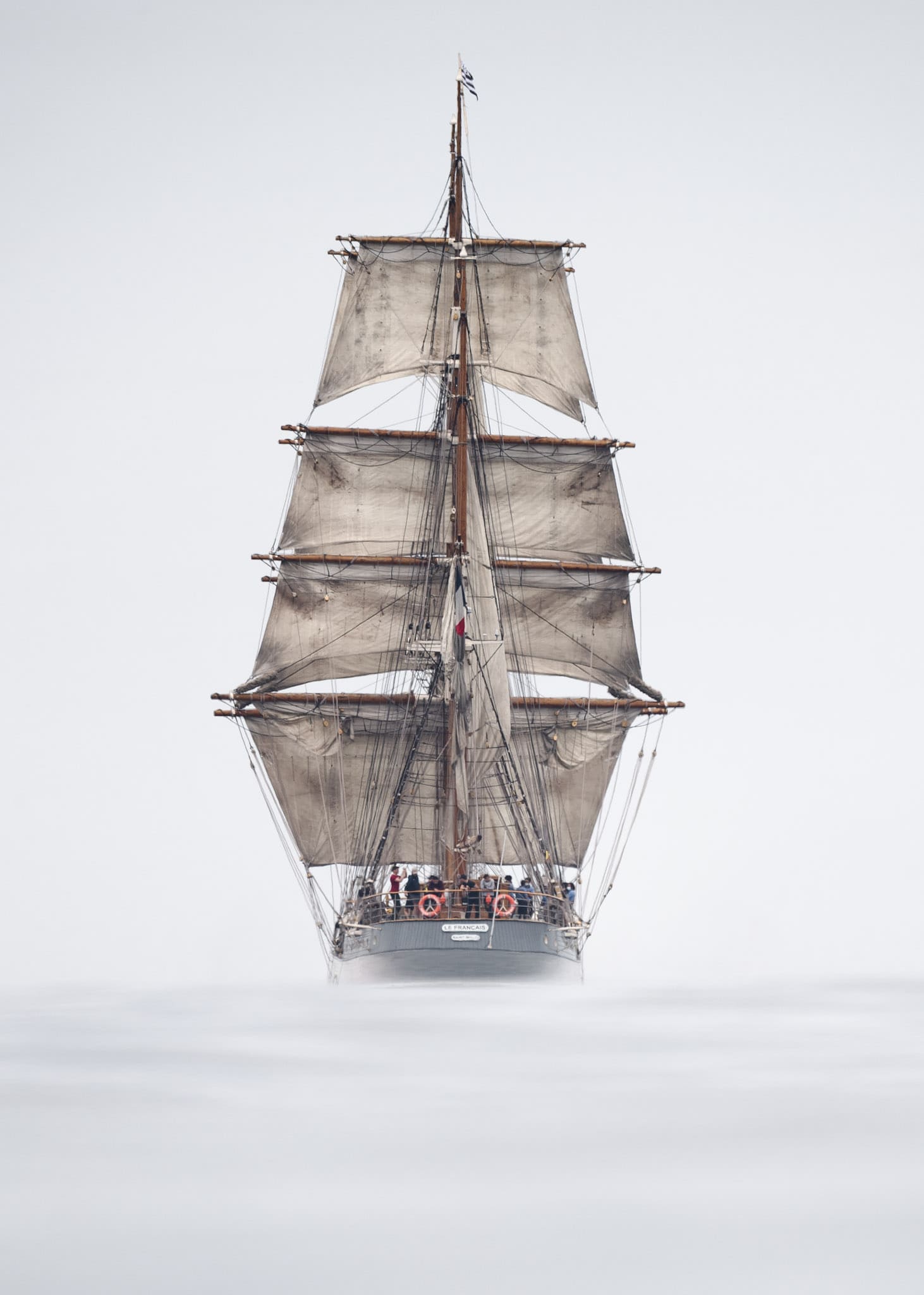 Il transcende les éléments, avec une mer parfois comparable à un champ de coton, et parfois si palpable qu’elle nous transporte aux côtés de l’artiste au moment de la prise de vue.