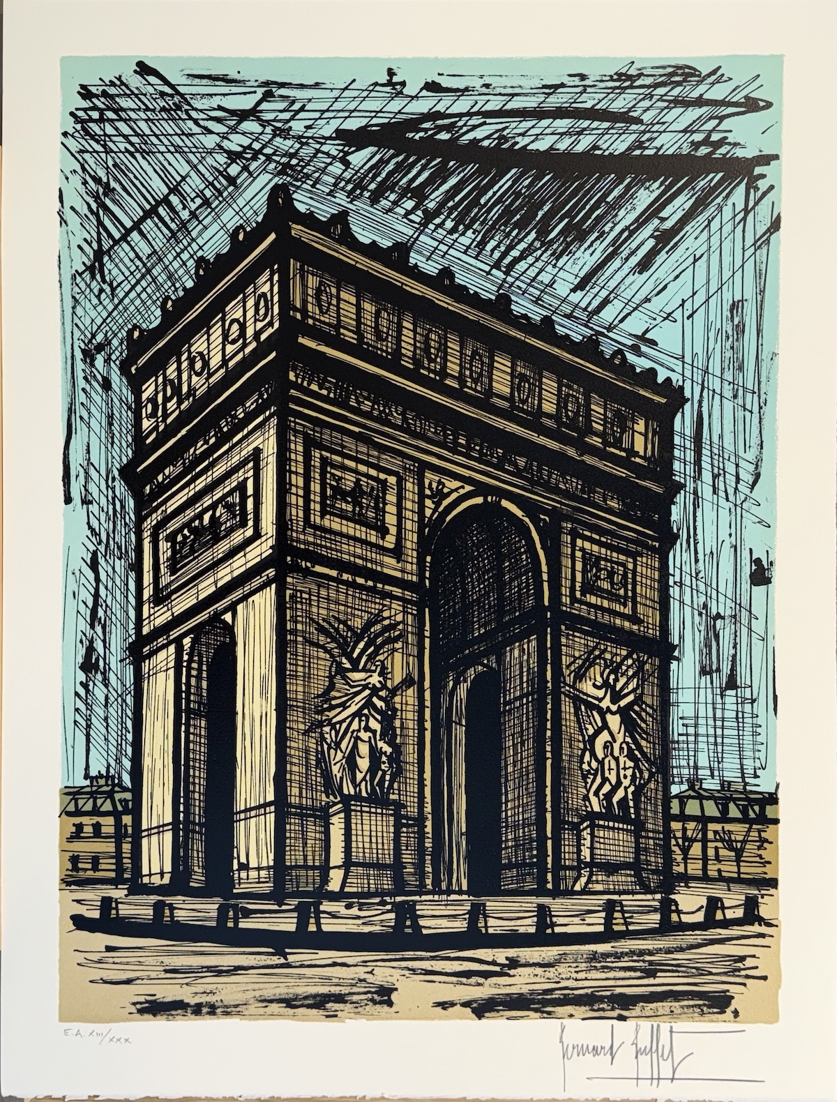 Né aux Batignolles en 1928, Bernard Buffet a entretenu tout au long de sa carrière un lien profond avec Paris et ses environs. La capitale française et sa région, véritables muses pour l’artiste, sont immortalisées dans ses lithographies originales signées.